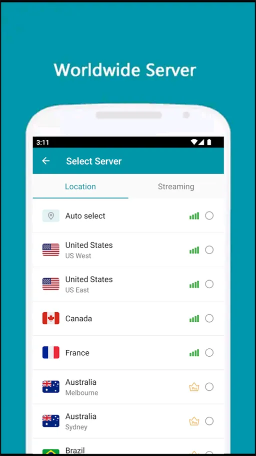 - انتشار خوادم واسع يمنحك خيارات متعددة: يتيح تنزيل تطبيق Thunder VPN مهكر Apk الاتصال بشبكة خوادم موزعة في عدة مناطق حول العالم، ما يوفر مرونة في اختيار الموقع الأنسب للاتصال. تتنوع الخوادم بين دول في أمريكا وأوروبا وآسيا وأستراليا والشرق الأوسط وأفريقيا، مما يساعد على تحسين سرعة الاتصال واستقراره حسب الموقع الجغرافي. يمكن للمستخدم الاعتماد على الاختيار التلقائي لأسرع خادم متاح أو تحديد دولة معينة يدوياً وفقاً لاحتياجاته. هذا الانتشار الواسع يسهم في تحسين تجربة البث والألعاب وفتح المحتوى المحلي لبعض الدول، مما يجعل الاستخدام أكثر تنوعاً وكفاءة في مختلف السيناريوهات اليومية.